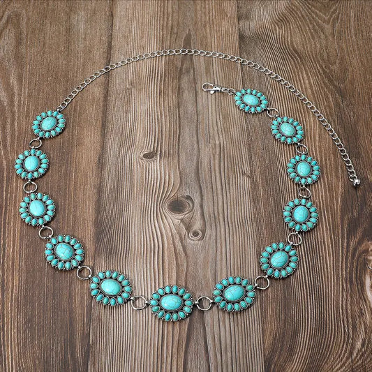 Boho Vintage Western Turquoise Chain Belt