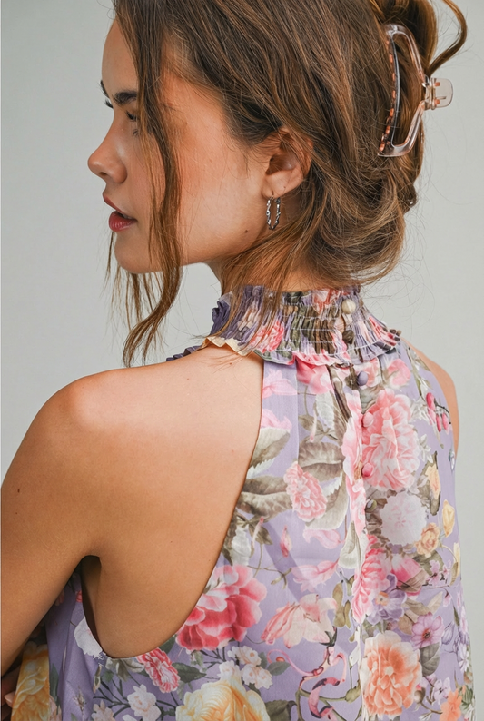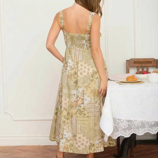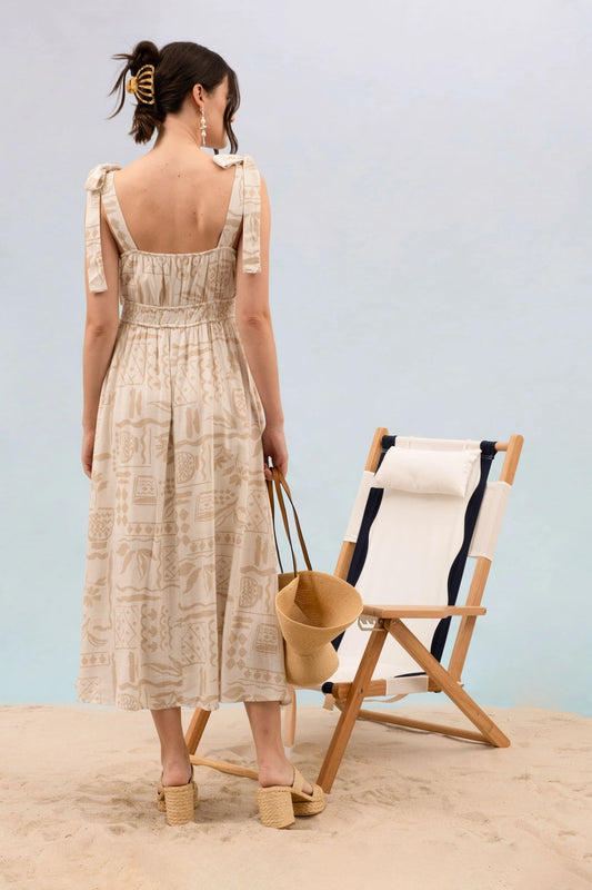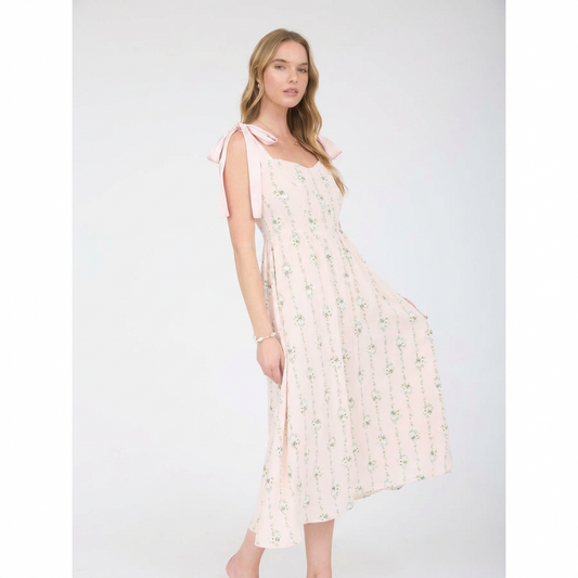 Ivory Boho Floral Print Tie Strap Midi Dress