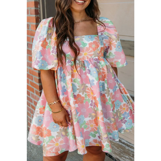 Floral Puff Sleeve Babydoll Dress Plus Size
