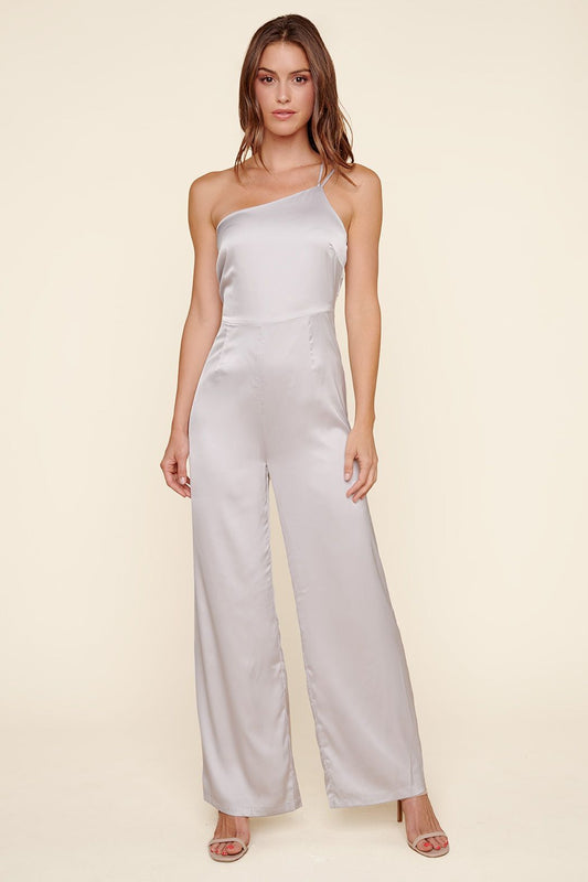 One Shoulder Satin Jumpsuit