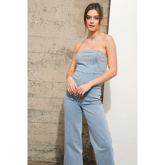 Denim Strapless Jumpsuit W Rhinetsone Detail