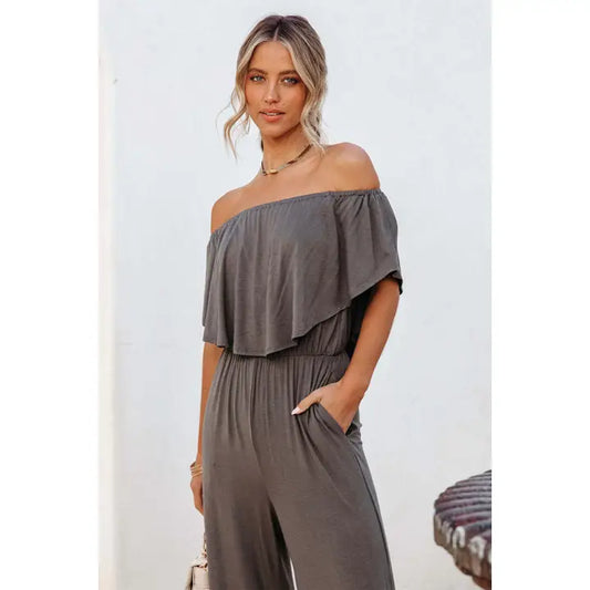 Grey Off The Shoulder Wide Leg Jumpsuit