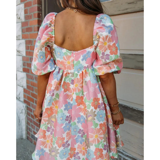 Floral Puff Sleeve Babydoll Dress Plus Size