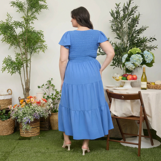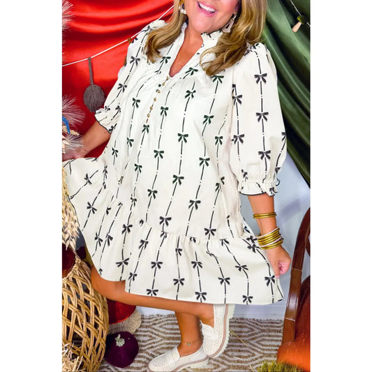 Plus Size Bow Ruffle 3/4 Sleeve Dress