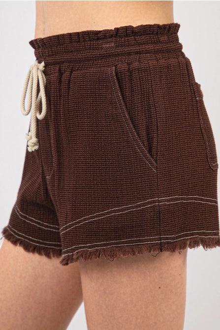 Chocolate Frayed Hem Tie Shorts