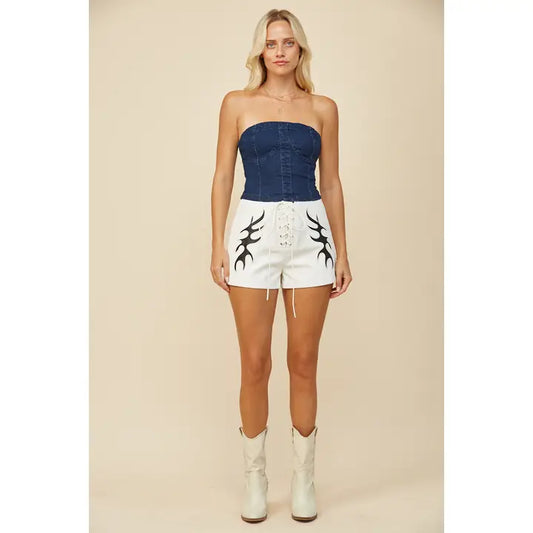 White Faux Leather Lightning Detail Shorts