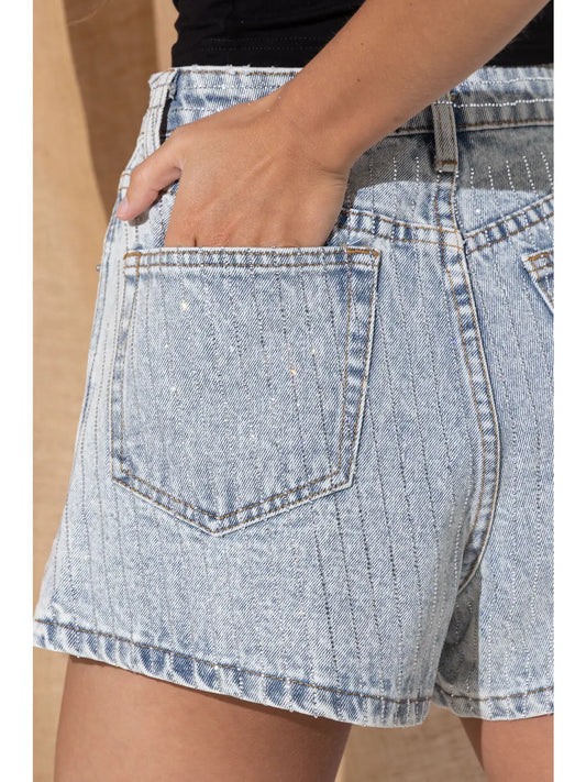 Denim Rhinestone Stud Shorts