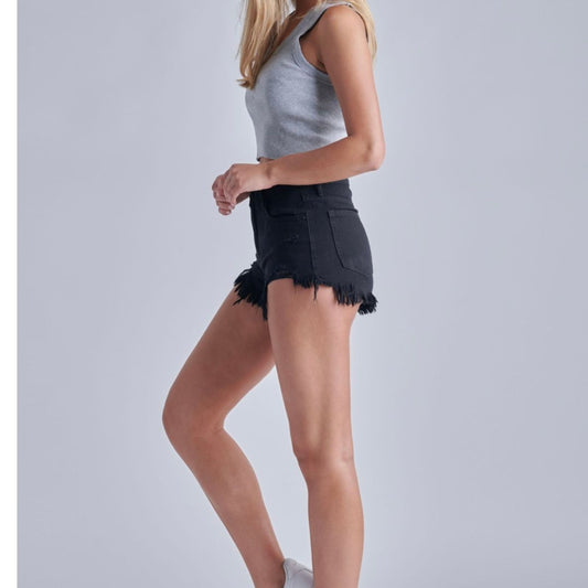 Black Denim High Rise Fray Shorts