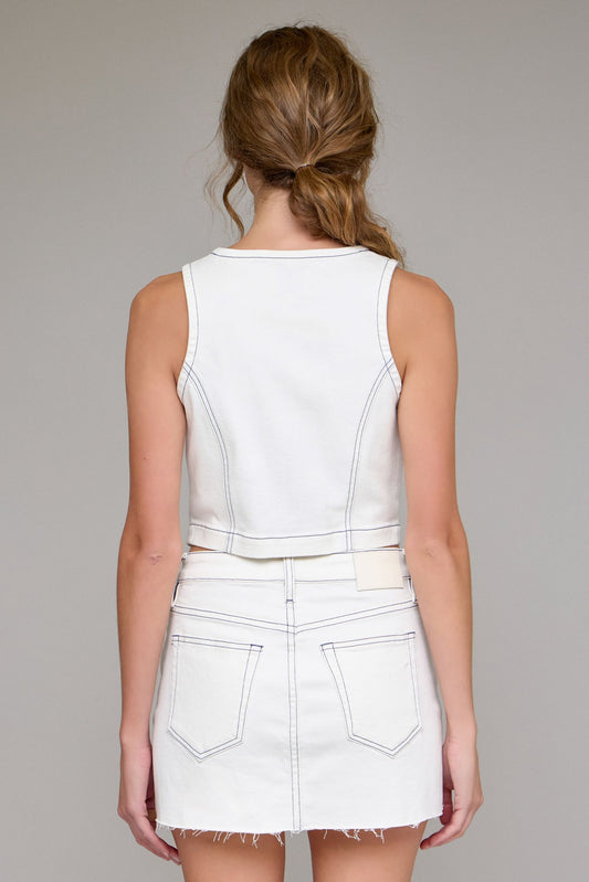 White Wash Cropped Fitted Vest